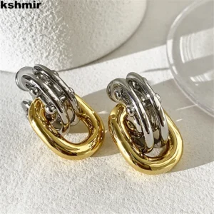 kshmir 2022 temperament two-color metal stitching fashion women earrings earrings women Jewelry Accessories Gifts