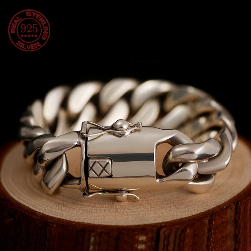 Factory price powerful Cuba S925 sterling silver bracelet men’s fashion punk personality European and American hip hop Men Gift