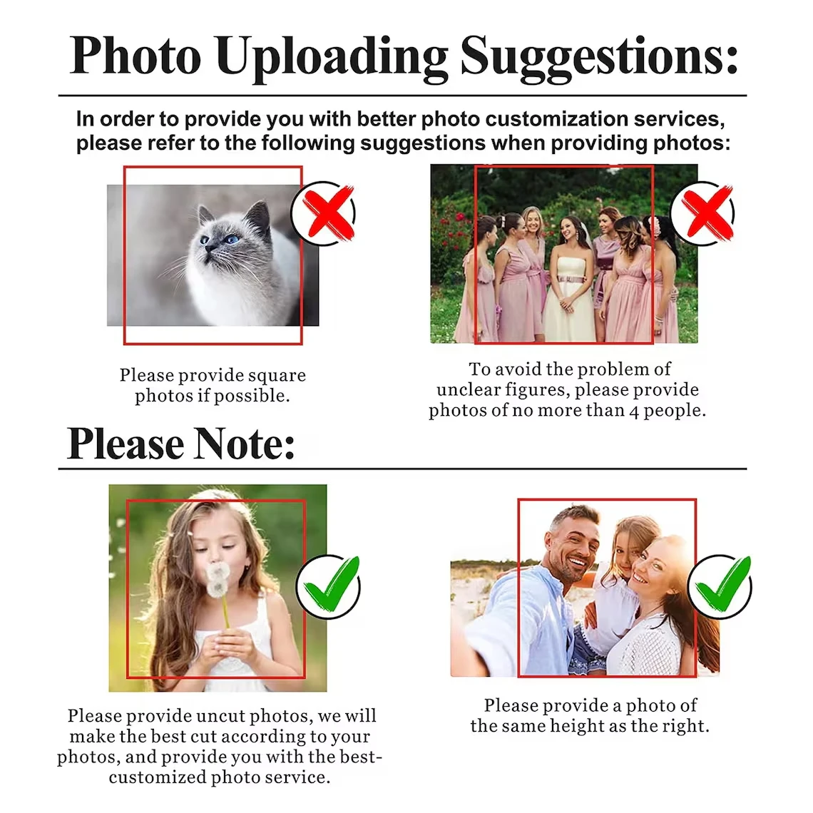 • It is recommended that you upload high-resolution, high-contrast photos to us.